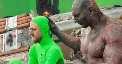 《权利的游戏》当中,演员对着一个绿色的块块来表演……也不知道会不会跳戏
