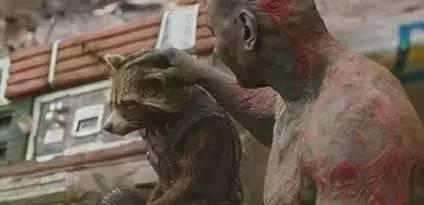 《银河护卫队》中小绿人饰演的火箭浣熊