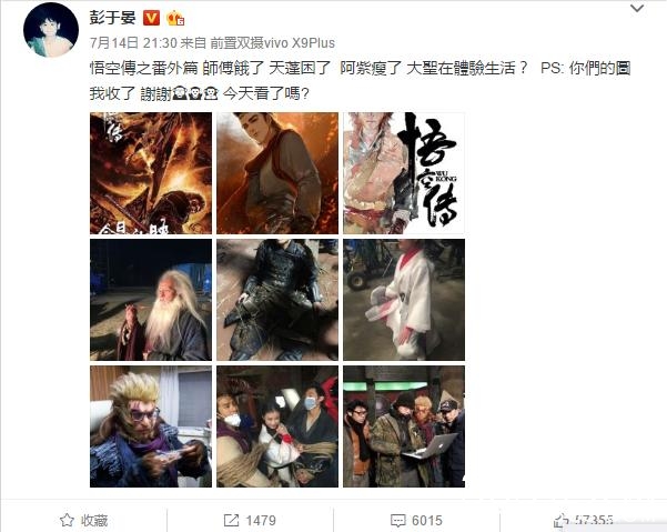 7月14号晚上,彭于晏官微放出悟空传的内幕花絮图片。