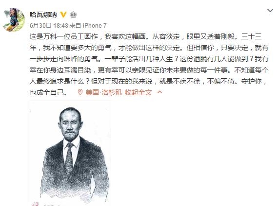 如今,万科告别了董事会。之后,田朴珺在微博回应:对于现在的我来说,就是不疾不徐,不偏不倚。守护你,也成全自己。堪称是现代版本的“我养你”的爱情宣言。