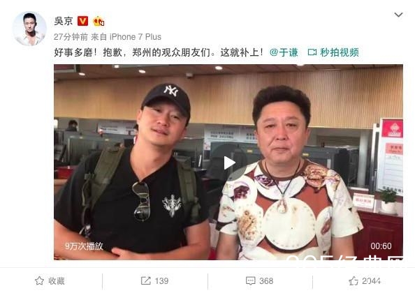 郑州路演被叫停 吴京于谦视频连连道歉