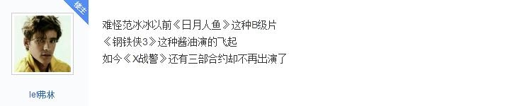 比起范冰冰,李冰冰算是幸运的了,在《X战警·逆转未来》中,范爷露脸没有超过3分钟。