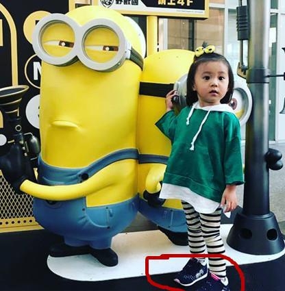 姐姐带去看小黄人,咘咘当然是很开心啦,不过在晒出的照片中有眼尖的网友注意到咘咘的鞋子穿反了!!!