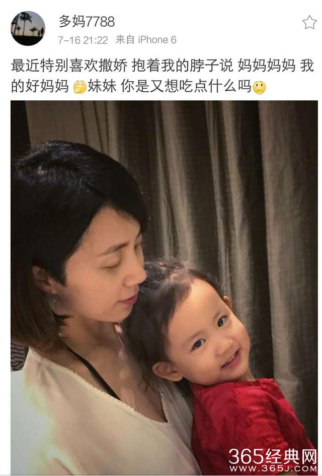 多妈孙莉在微博晒出和小女儿的合照,两个人依偎在一起,看起来很是甜蜜的。