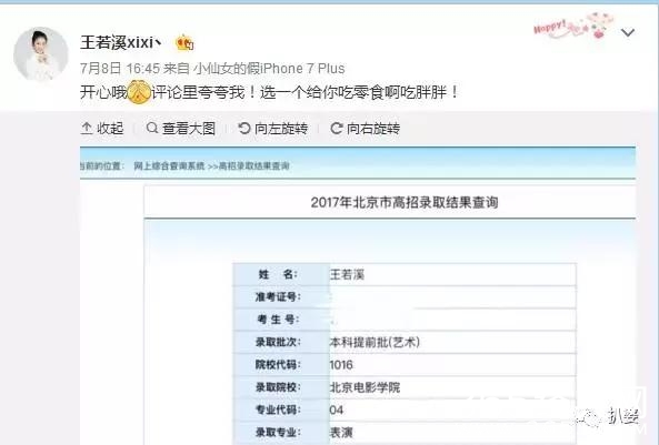 还挺谦虚,说虽然专业成绩考的很好,但不知道高考分数够不够进北影。