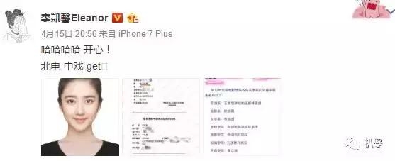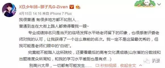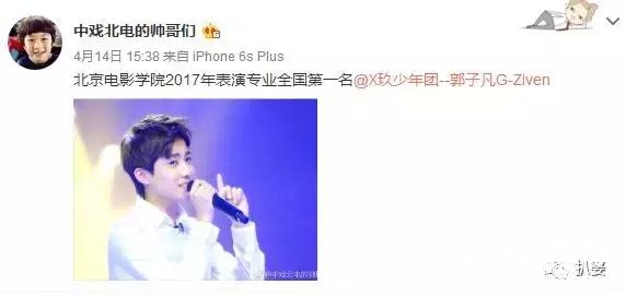 郭子凡没公布自己的高考成绩,只通过官博宣布超过了艺术分数线,被北影录取没问题。
