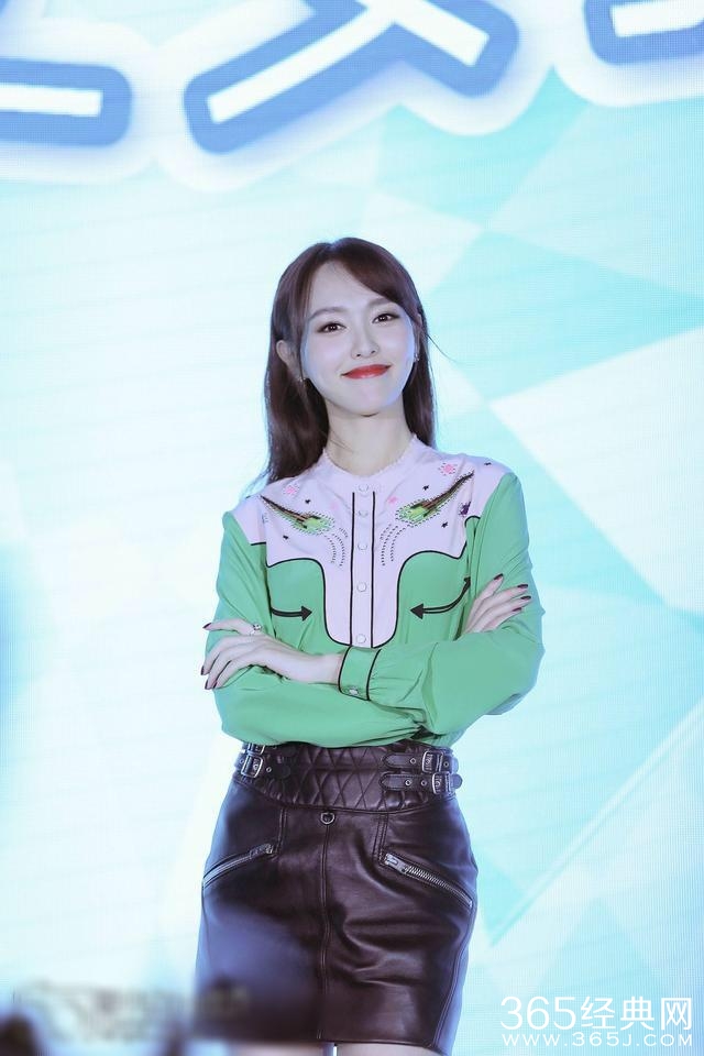 最近,她在一个活动现场穿得一身鲜绿色衬衫配黑色皮裙,再配一个大红唇,真是养眼。绿色的衬衫颜色饱和度很高,拼色白层次感强,胸前的印花图案有俏皮感,下身再搭配着这一条小皮裙,休闲中又带着一丝丝帅气霸道,整体造型好评。