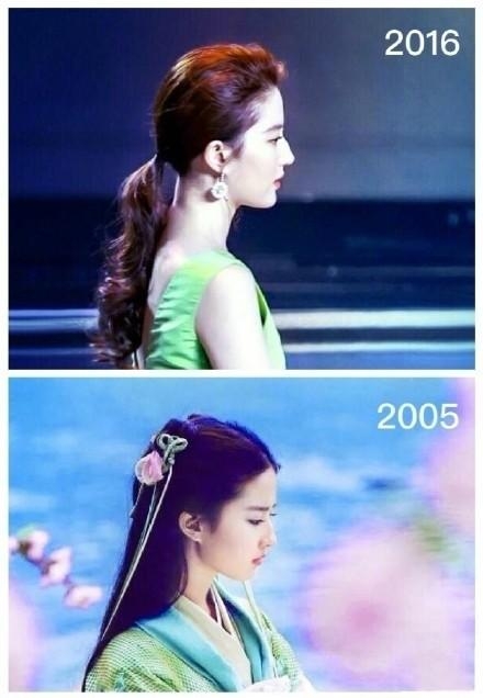 去年参加芭莎慈善晚宴的刘亦菲不经意间被抓拍到的一次转身以及2005年拍《仙剑奇侠传》的赵灵儿,请问哪能看得出来这两张照片之间差了11年?