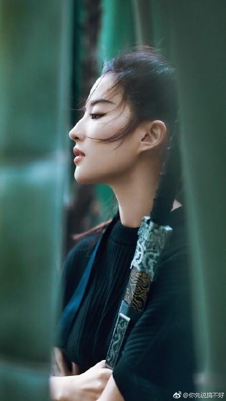 但是最让我觉得惊艳的,是之前刘亦菲给某个杂志拍的一组写真,其中一张真是美得让人不想眨眼。照片里刘亦菲双手交叉在胸前,手里握了一把剑,侧脸昂头,微风吹起鬓间的几缕头发丝,美得就像一幅画。