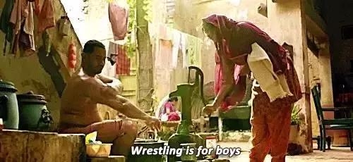 而当我们看到电影的最后,女孩真的通过摔跤改变自己命运的时,我们当然会发自内心地认为这个故事,这个真实的故事,原来那么光明、暖心。可能依然会有人说,这个父亲是为了让孩子实现自己的梦想,才逼迫女儿们刻苦训练。但看看电影里那个14岁就被父母嫁出家门的姑娘说了什么:我倒是希望能有这样的父亲,能为我的未来着想,而不是从小就只让我做家务、烧饭。我一满14岁,就被匆匆嫁给从未见过面的男人。仿佛我从来没有存在过一样。接下来我就要过一辈子与扫帚、炉灶相依为命的生活。
