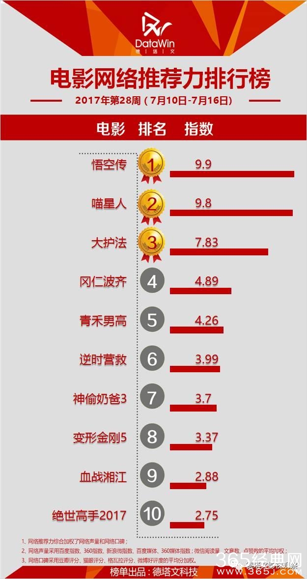 《悟空传》作为近期最受期待的影片、和具有广泛影响力的著名IP,原著粉对还原度有不同意见,电影观众针对电影也有各种表达,同时还有郑爽等演员粉丝大力推广,造成电影宣传度和话题量都爆棚,获得第一实至名归。《大护法》的网络推荐力同样不低,如果能维持则还有一定翻盘的可能。