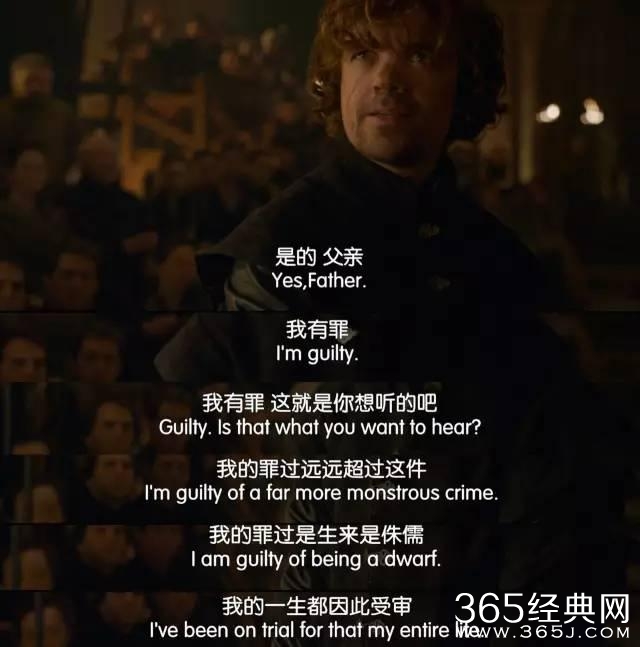 爱人的背叛彻底击垮了提利昂,当父亲问他是否承认自己谋害了国王时,他回答说: