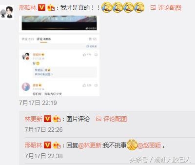 就在林更新发博后,有一个名为“邗昭林”的高仿号秒评:好(微笑)