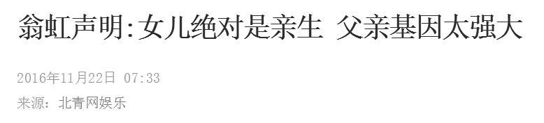 搞笑的是,翁虹还曾发声明说女儿绝对是她生的,只因爸爸的基因太强大……
