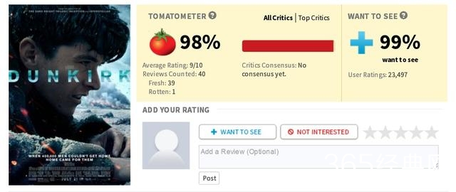 诺兰新片《敦刻尔克》烂番茄新鲜度攀升至98%