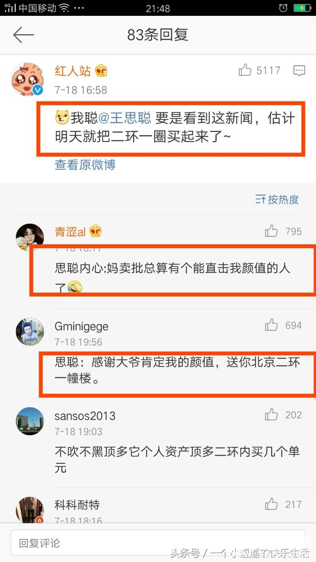 王思聪:总算有人夸我颜值了,送大爷一套房!