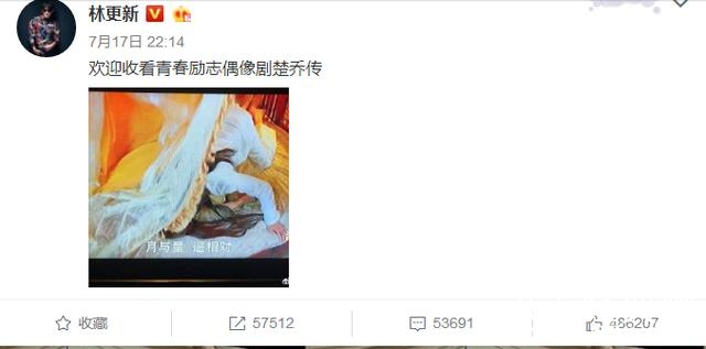 林更新发微博调笑:青春励志偶像剧。哪里励志?刚发微博,就引来无数网友评论,调侃宇文玥公子终于开窍,生扑楚乔!