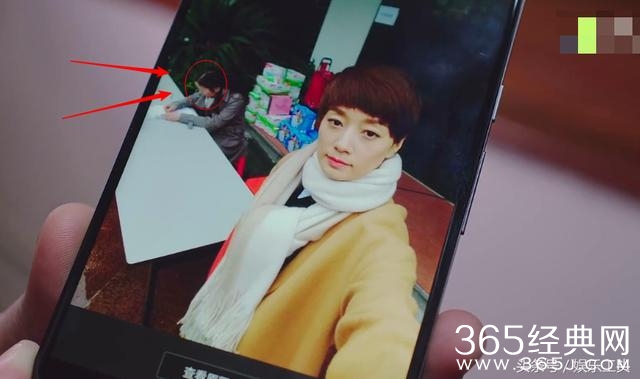 ▲另一边,段经理在公司拿出罗子君的自拍照给贺涵(靳东)和刘总看,注意看手机里的罗子君后面的大妈,怎么是低头的?