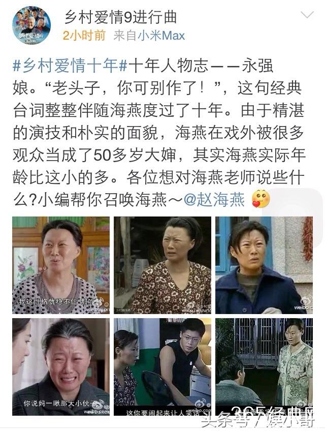 最近正在拍摄乡村爱情9,今年也是乡村爱情开播十周年,乡9官方微博发博人物之海燕