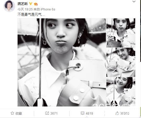 28日晚7点左右,唐艺昕在微博中发了几张照片,就说了“不是勇气是元气”,谁料脑洞大开的网友,纷纷留言,表示这是不是要公开恋情了,大有逼婚的架势。