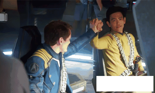 比如发生在“很久以前,一个远方的星系”的《星球大战》系列,喜欢同性的角色也绝缘大银幕(《星战》小说讲到了同志角色,但作为主体的电影中没有)。有人前阵子还问《星战7》导演J.J.艾布拉姆斯:“《星战》何时会出现同志角色呢?”JJ的回答是“相信未来就会有”。结果《星球大战》里还没有呢,跟它并肩的另一科幻巨头系列、同样有JJ参与的《星际迷航》里先出来了。而即使在后者这个以“勇敢地前往未到达之处”为信条、在人设等各个方面也大胆、具有先锋性、卡司中不乏同志演员(现在就有饰演新版Spock的扎克瑞·昆图已经出柜)的系列那总量繁多的剧集+动画+电影中,苏鲁也是第一个明确的同志角色。