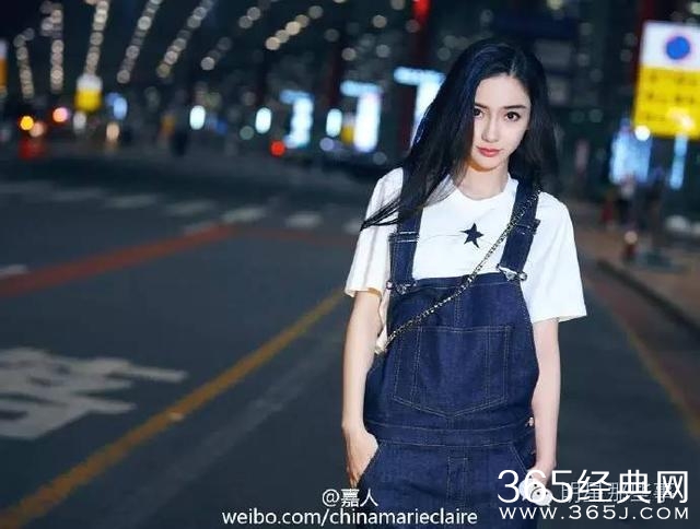 不过平时的baby,怕是更愿意把自己往年轻了搭配打扮。小白Tee+牛仔吊带裙,少女范十足。