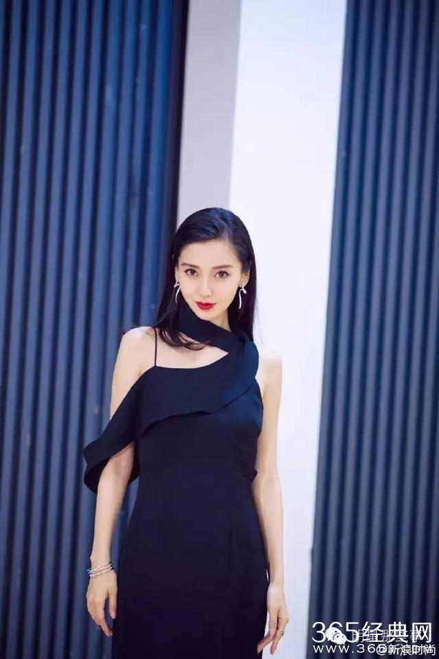 一身妩媚的黑色礼服搭配红唇,将刘海梳起来的baby成熟妩媚