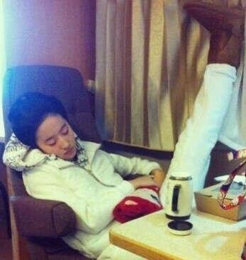 看不到脸,你就不知道是谁吗?这是郑爽哦,在参加真人秀旋风孝子里,是真的累了,这鞋子都没有来得及脱就睡着了。