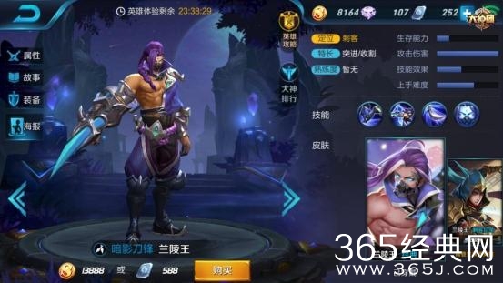高贵的兰陵王浴血归来,刀锋之上是淋不尽的献血,古老的献血长河在空中飘荡,那一抹血脉的忧伤在倾诉衷肠,神出鬼没是兰陵王的代名词,一把隐刀残留着带血的气息,30秒的隐身效果,可以把任何人头收入囊中,看兰陵王如何在5V5大乱斗中统治战场,打下一片自己的疆土!