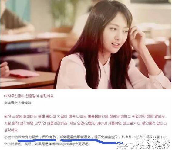 不过,也有韩国网友们称:郑爽确实挺漂亮,但是太瘦,不符合原著中前凸后翘的微微形象。