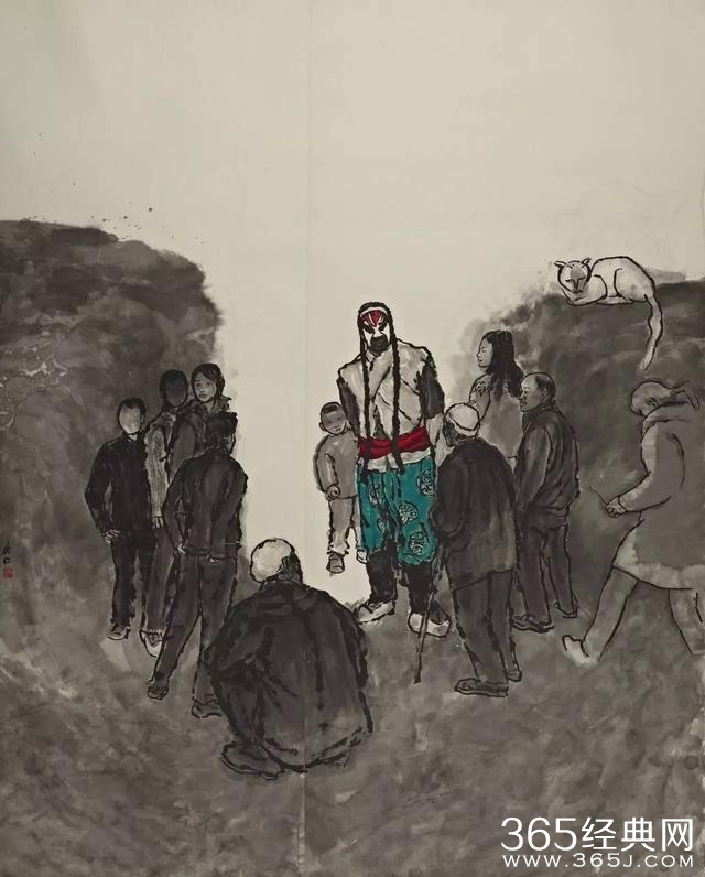 他具有学院教育所培养出来的良好的造型禀赋与水墨感觉,同时也关注水墨的当代进程,自觉投身其中,将水墨的表达与当代艺术观念的拓展结合起来,将人物画造型与反映时代文化特征的整体感受结合起来,由此形成了他的艺术具有跨界与综合的面貌体征。