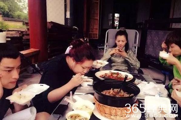 《琅琊榜》剧组吃饭时间,果然是土豪剧组,看刘涛满意地玩手机。