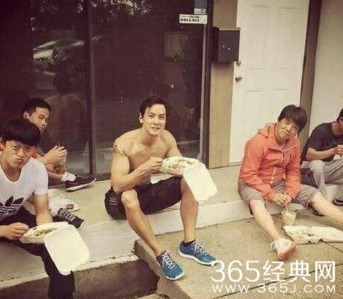 男神吴彦祖吃盒饭你看过没,光着膀子坐在地上吃盒饭,相当接地气。