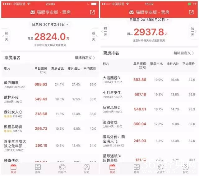 根据猫眼数据显示:本周二(9月27日)单日票房跌破3000万大关,报收2937.8万。这个单日成绩到底有多惨呢,就这么说吧,2011年(也就是6年前的)年三十儿的票房大概跟今天差不多(请看下面对照图-1)。