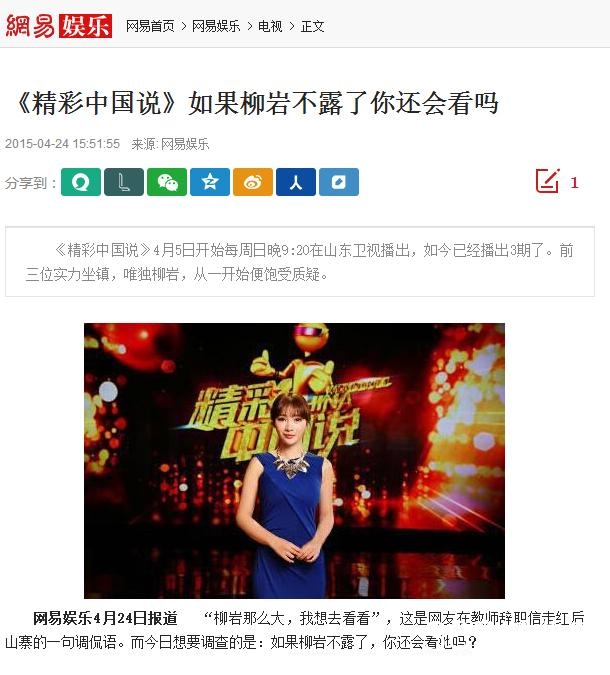 甚至去年在《精彩中国说里》柳岩穿一身蓝色得体长裙亮相,当时就有媒体直言,不露的柳岩你还会看吗?