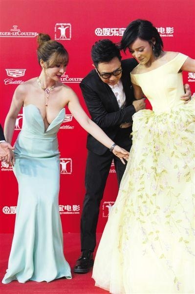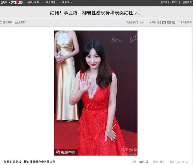 但低调只是暂时,到了今年6月的华表奖上,她又以一套深V红裙秀出酥胸,成功抢镜。