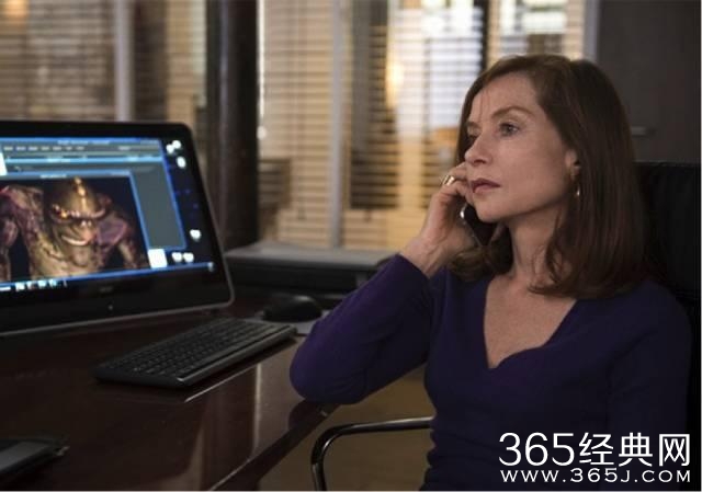 范霍文:这在原本的小说里是没有的。在书里,米歇尔(Michèle)是一家剧本创作公司的CEO。她有20个作家为她工作,是写电视剧本的。有时,她会用很严苛的方式管理他们。我们觉得,在一部电影里,谈论剧本、故事之类的东西——关于角色和戏剧结构——这对观众来说会很无聊。我女儿告诉我说,应该有个更好的设定。她是个画家,她建议我,将米歇尔塑造成一个管理电子游戏公司的老板。我问大卫他的想法。结果他恰好是个电子游戏的专家。他喜欢电子游戏,并且经常玩。他知道那些游戏术语、谈论游戏的方式,并且知道交互游戏中的技巧。所以,我们立即做了这个改编。