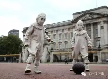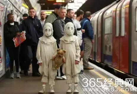 是的,伦敦街头突然出现了两个怪异的小孩,全身的幽灵装还戴着面具,他们出现在地铁,徘徊在英女王的白金汉宫门外,走上十字街头,出现在玩具商店......