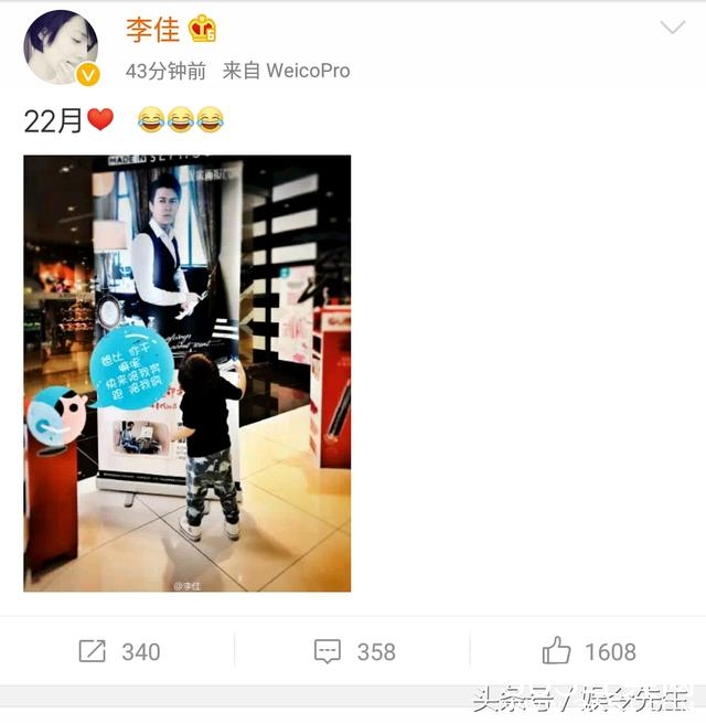 今天,李佳在微博上晒出了22个月大的儿子在商场看到爸爸靳东的海报时的背影,并配上萌萌哒的内心独白,萌翻了众网友。