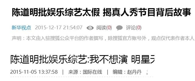 当下明星们都跑去参加综艺了,大量综艺充斥这荧屏,导师们虚假的表演无处不在。陈道明却很少参加,批真人秀综艺太假▼