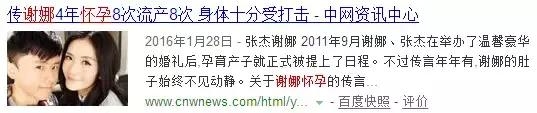 他们结婚的这么多年,谢娜一直没有怀孕,基本所有的新闻都是围绕着“谢娜怀孕了”“谢娜肚子又大了”,这种新闻几乎每年都有。