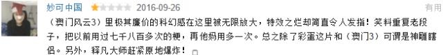 @妙可中国:“(澳门风云3)里极其廉价的科幻感在这里被无限放大,特效之烂却简直令人发指!笑料重复老段子,把以前用过七千八百多次的梗,再他妈用多一次。总之除了彩蛋这片和(澳门3)可谓是神雕瞎侣。”