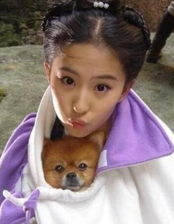 想不到神仙姐姐刘亦菲也有卖萌的时候呢!看造型应该是拍摄仙女版的小龙女呢!