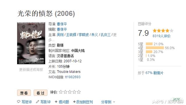 今天给大家推荐一部电影《光荣的愤怒》,是曹保平在2006的一部作品。