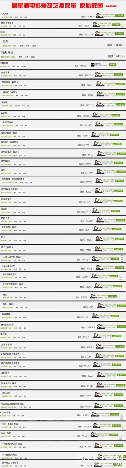 3.爱奇艺播放次数只是周星驰无数播放频次的缩影之一。观众为黄渤贡献了70亿票房,却只投6票给他,输给冯绍峰,心疼
