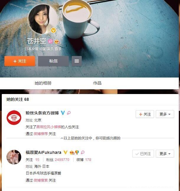 苍老师粉丝数16845856人,苍老师也不是随便的人,她迄今只关注了68个人,但是确实关注了福原爱。观众为黄渤贡献了70亿票房,却只投6票给他,输给冯绍峰,心疼