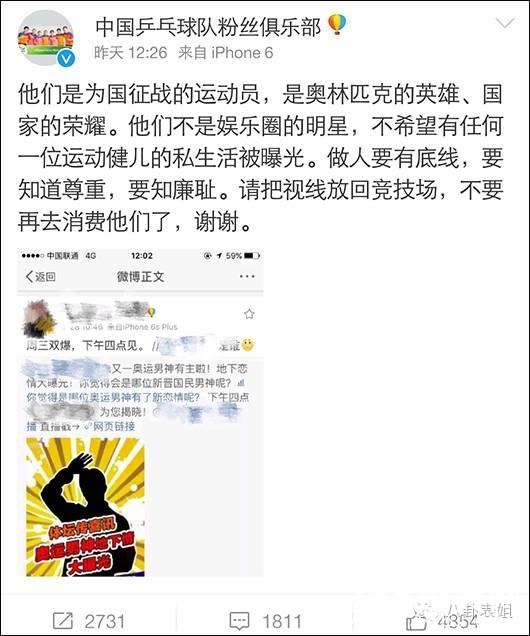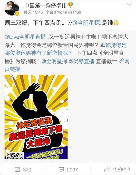 9月28日上午,卓伟在微博爆料说,要公布以为运动员的恋情。