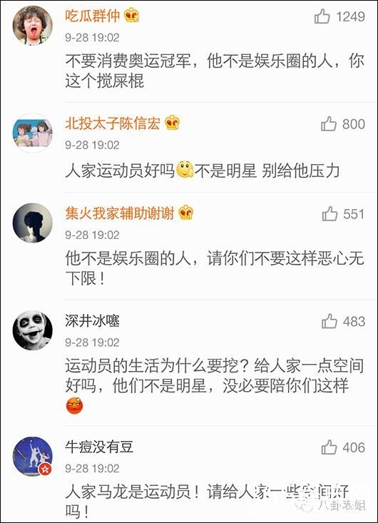 但是,关注不代表网友们没底线,有着第一狗仔之称的卓伟因为把手伸向了运动员,最终惹起了众怒。