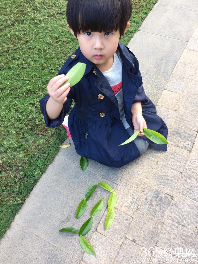 小叶子用树叶拼了一个“贝”字!贝儿,小叶子是不是傻傻分不清?
