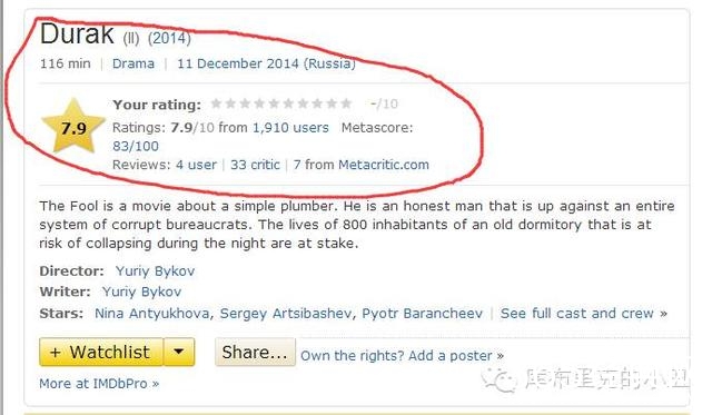 今天说的这个,又是个冷门,俄罗斯电影,片名叫:Дурак,经小丑查证,这个俄